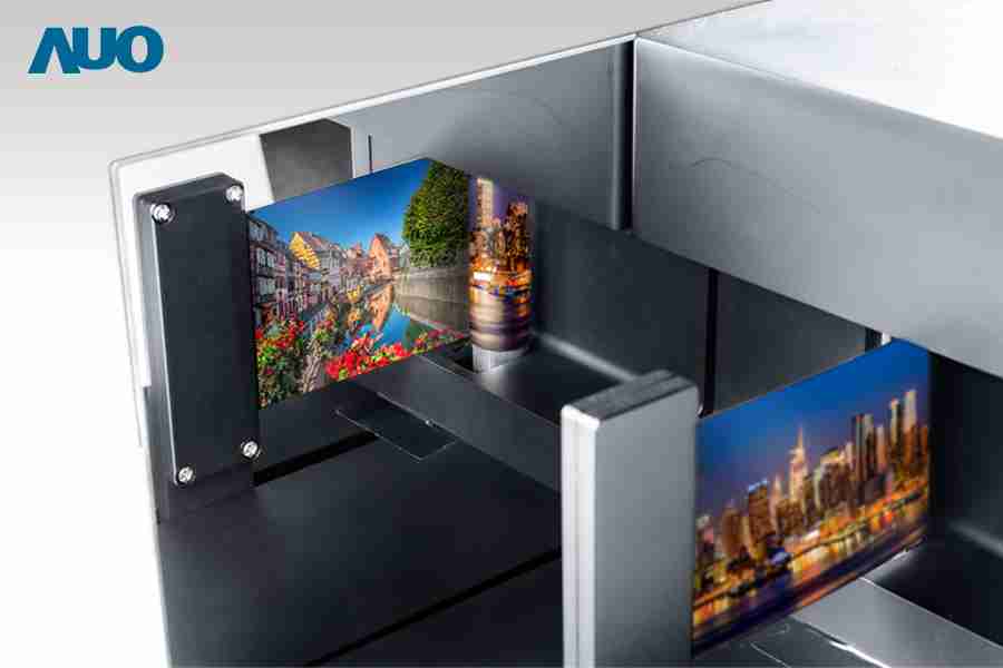 杏悦2 5.6寸双面可卷式 OLED 显示器,,双面显示可让不同用户观看,,并以卷曲方式收纳便于携带